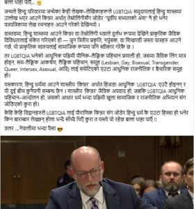 “हिन्दु धर्ममा आएको जैविक अपवादलाई समावेश गरेको परम्परा र आजको पश्चिमी यौनिक आन्दोलन एकै होइनन्। यी दुईलाई जोड्नु वैचारिक बेइमानी हो,र सायद डलरको लोभमा गरिँदैछ।”