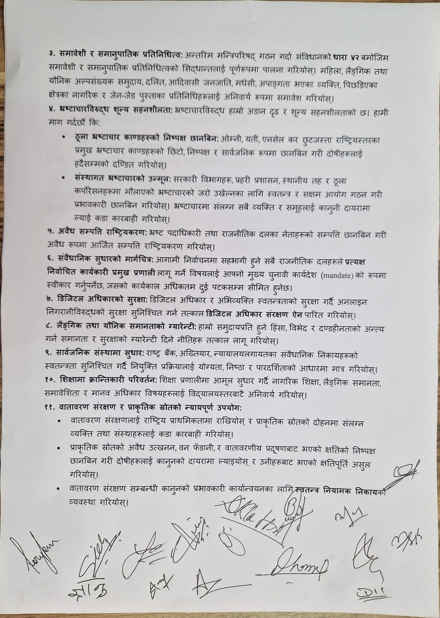 देशभरका सार्वजनिक संस्थाहरूमा देखिएको राजनीतिक दलीयकरण र सङ्कुचित स्वार्थको प्रयोगको भेलाले कडा विरोध गरेको छ। ऐतिहासिक आन्दोलनमा लैङ्गिक तथा यौनिक अल्पसङ्ख्यक समुदायको उल्लेखनीय सहभागिताको भेलाले उच्च कदर गरेको छ।