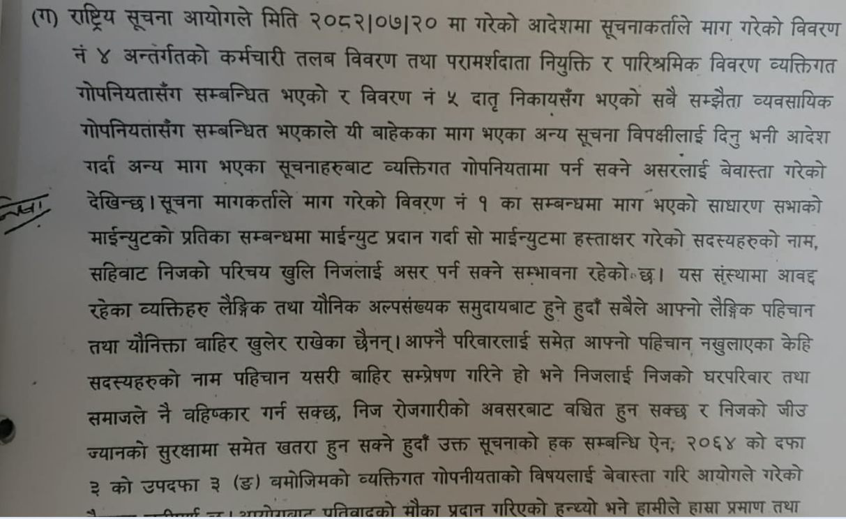 सुनिल बाबु पन्त नेतृत्वमा रहँदा यौनिक तथा लैङ्गिक अल्पसङ्ख्यक समुदायलाई खुलेर अधिकार माग्न प्रेरित गर्ने संस्थाको कोषाध्यक्ष बनेका राजकाे समेत मनिषाको लहैलहैमा गोपनीयता भङ्ग भएको पत्र मुद्दामा समावेश गरेको देखिएको छ।