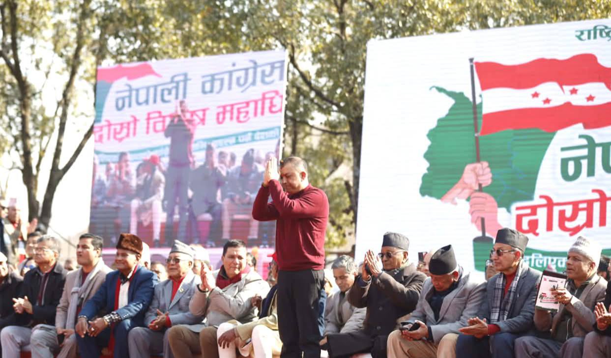 काठमाडौँको भृकुटीमण्डप भरिभराउ बनाउँदै गगन र विश्वले ‘पेलेरै जाने’ सभापति देउवालाई नेतृत्व छोड्न पटक–पटक गरिएको आग्रह स्मरण गराएका छन्। विशेष महाधिवेशन माग गरिएको तीन महिनाभित्र महाधिवेशन गरिनुपर्ने भए पनि संस्थापन पक्षले नियमित महाधिवेशनको मिति तोकेर वैशाखमा पुर्याएपछि गगन र विश्वले पार्टी केन्द्रीय कार्यालयको अधिकार प्रयोग गर्दै विशेष महाधिवेशनको आयोजना गरेका हुन्।