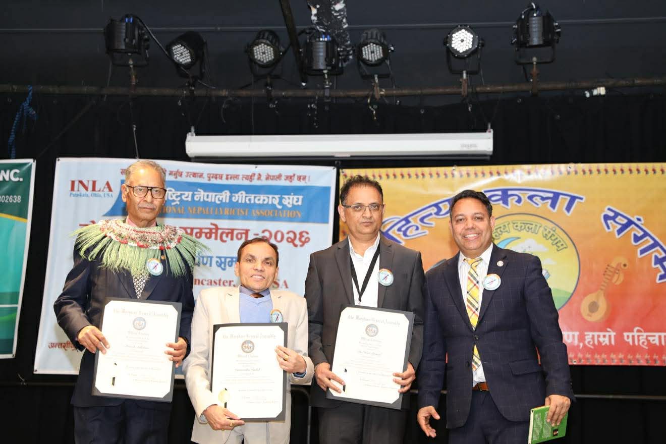 अमेरिका – अन्तर्राष्ट्रिय नेपाली गीतकार सङ्घ (INLA) र साहित्य कला सङ्गम (SKS) को संयुक्त आयोजनामा नेपाली सङ्गीत तथा साहित्य क्षेत्रमा दीर्घकालीन योगदान पुर्याएका स्रष्टाहरूलाई विभिन्न विधामा सम्मान गरिएको छ।