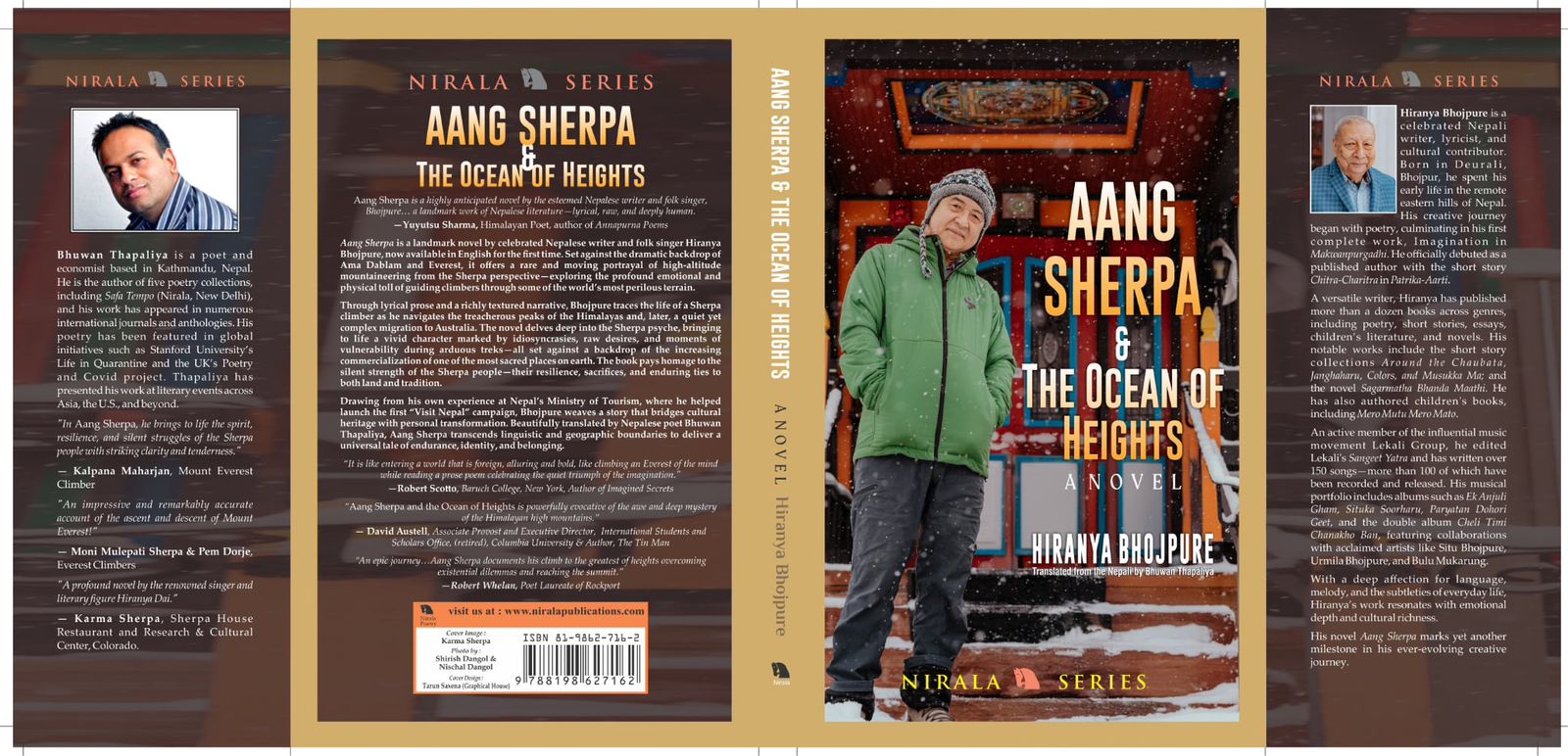 Ang Sherpa and Ocean of the Heights is the English rendition of Bhojpure’s acclaimed Nepali novel Sagarmathabhanda Mathi (“Above Everest”). The translation, completed by poet Bhuvan Thapaliya, has been published by Nirala Publications, New Delhi.